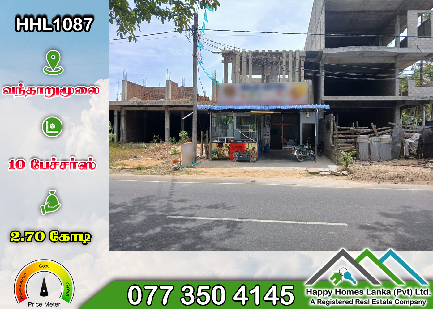 HHL1060 – 4.26 Perches of Commercial Building for Sale in Puliyantivu, Batticaloa.