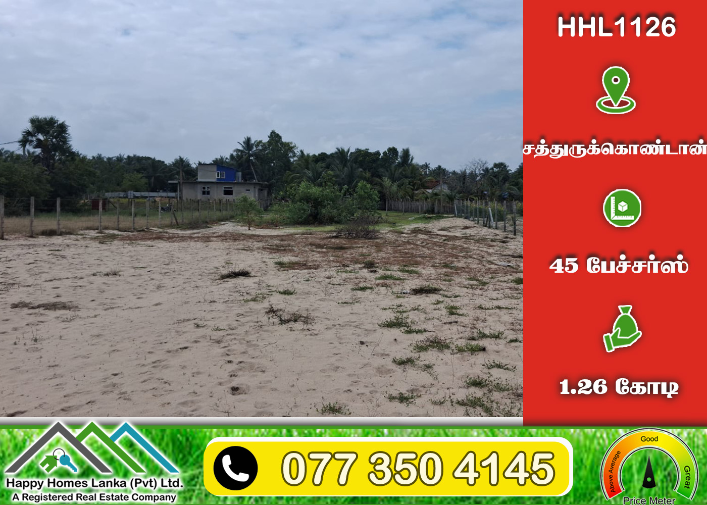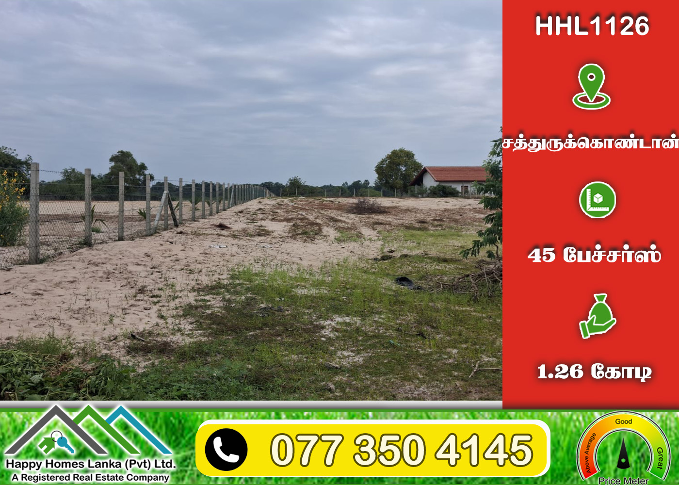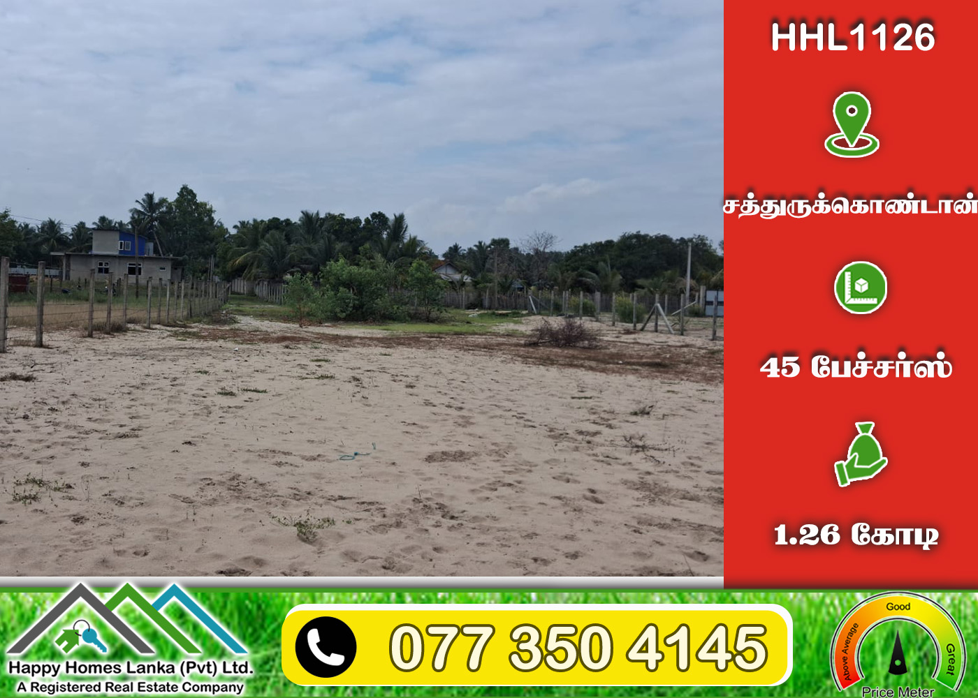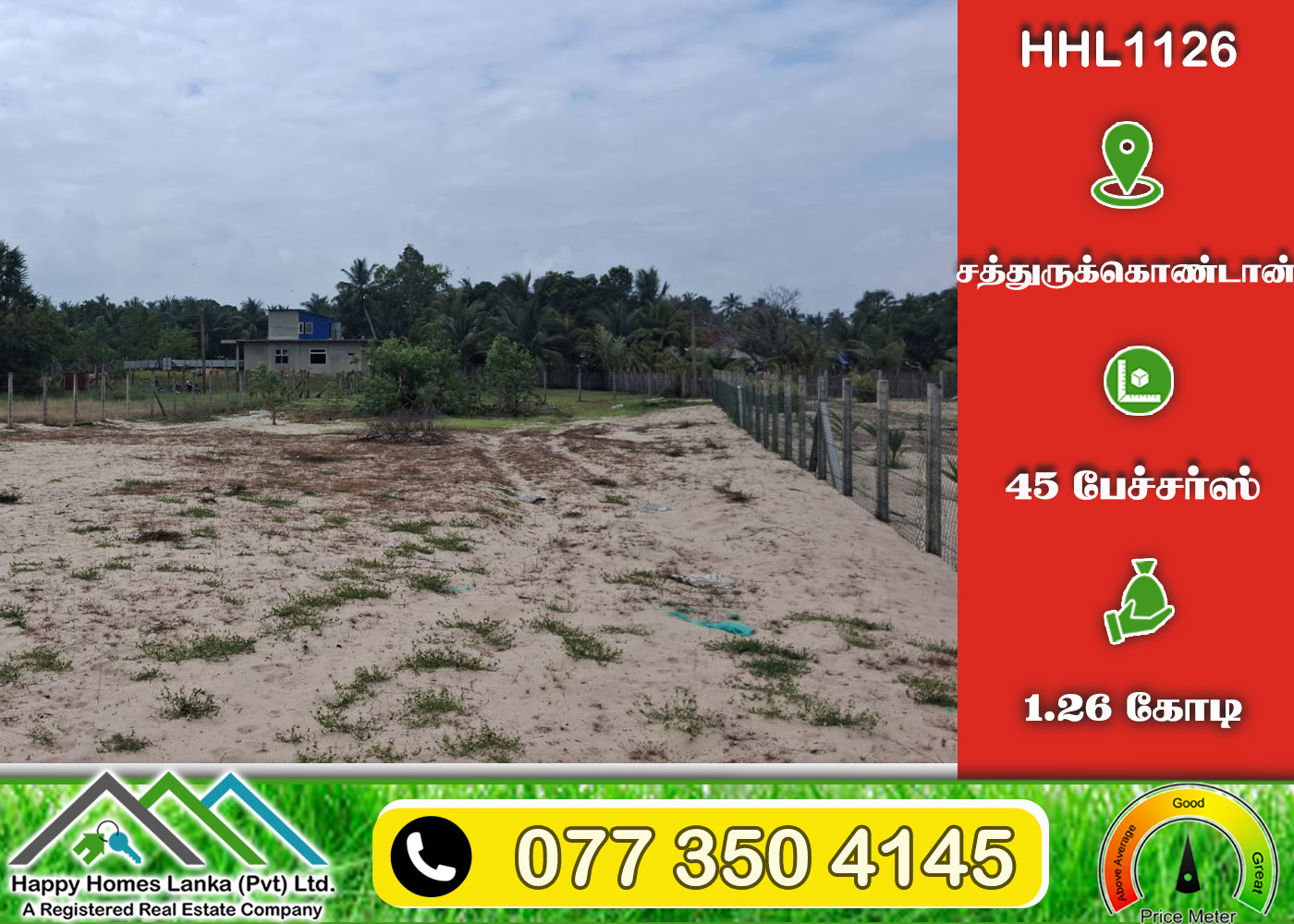 💰 1.26 கோடி 📏 45 பேச்சர்ஸ் காணி (உறுதி) (HHL1126)