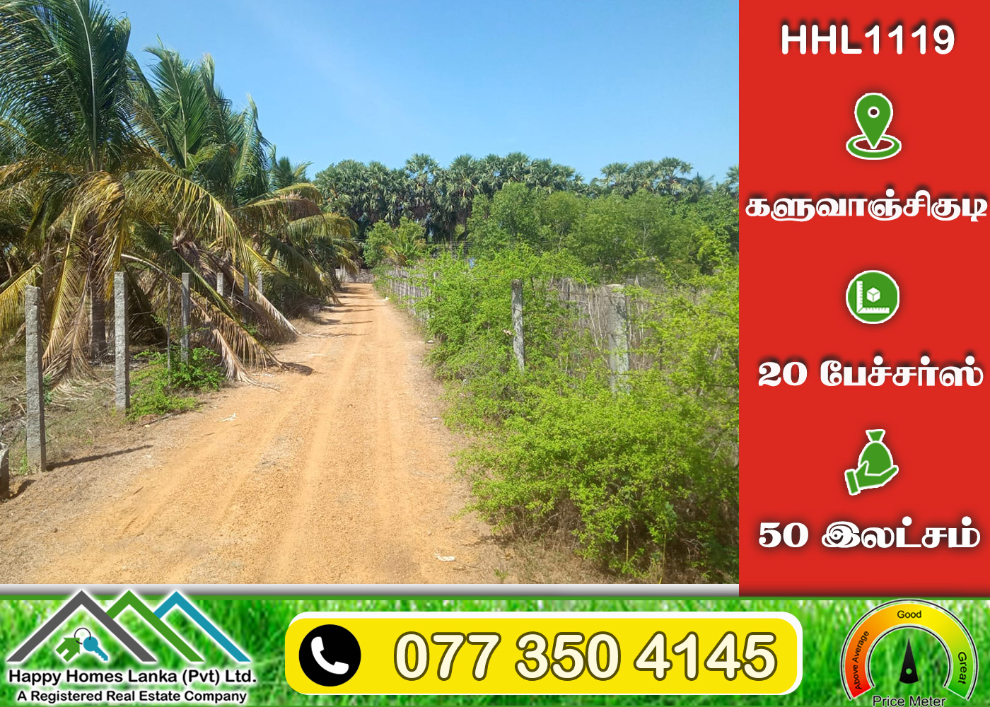 💰 50 இலட்சம் 📏 20 பேச்சர்ஸ் காணி (உறுதி) (HHL1119)