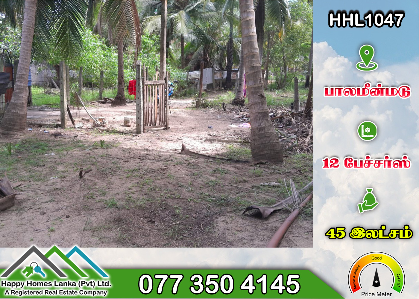 💰 45 இலட்சம்  📏 12 பேச்சர்ஸ் காணி. (உறுதி) (HHL1047)