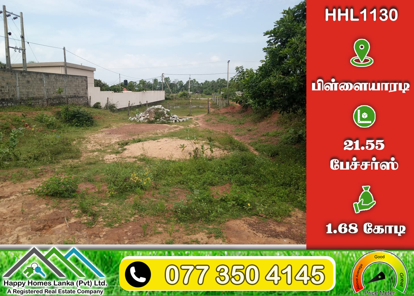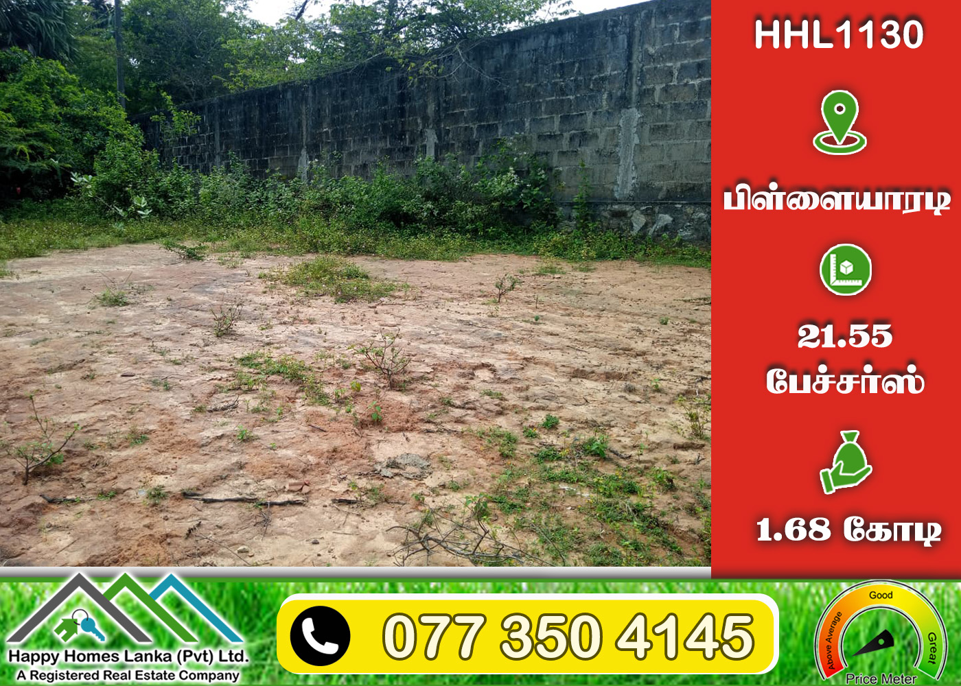 💰 1.68 கோடி 📏 21.55 பேச்சர்ஸ் காணி (உறுதி) (HHL1130)